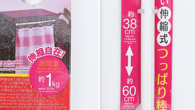 | 注意事項 | 本品伸縮範圍約38~60cm。吊掛窗簾或其他物品前,請先測試是否有穩固裝牢,以免本品掉落造成危險。 |