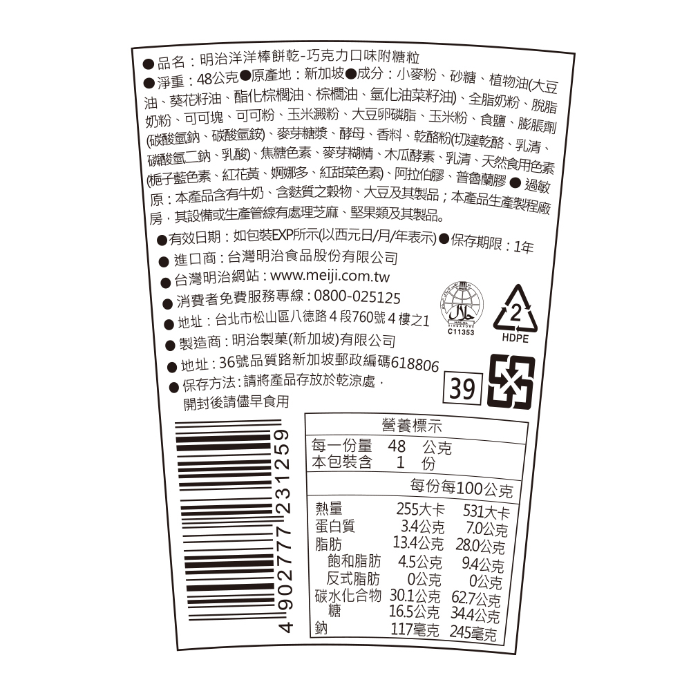 明治 洋洋棒餅乾/巧克力口味附糖粒