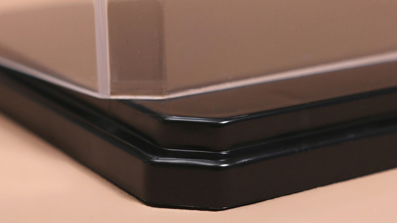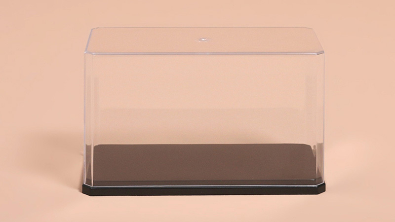 將公仔或模型等放入後,以透明蓋扣上底座固定,避免內裝物移動時掉出